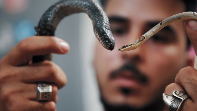 Die meisten Menschen wären entsetzt, wenn eine Schlange sie beißen würde, aber nicht Khader oder sein Neffe Khalil. Sie verehren diese giftigen Kreaturen... Reißzähne, Bisse und so weiter.