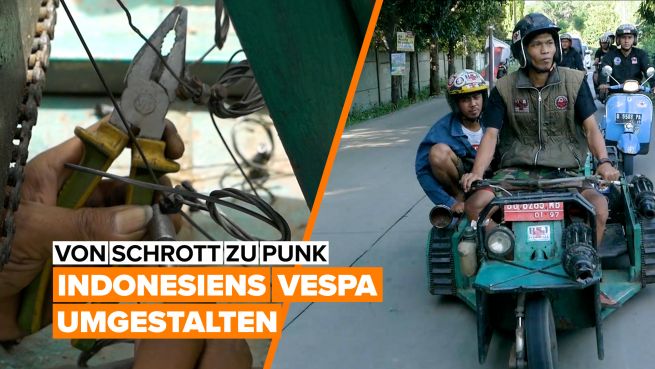 In Indonesien gibt es eine Underground-Punk-Szene, in der Vespas zu verrückten Fahrzeugen im Mad-Max-Stil umgebaut werden.