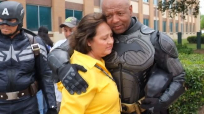 Die Polizisten von Dallas sind derzeit bemüht, die gute Beziehung zu ihrer Gemeinde aufrechtzuerhalten. Als Superhelden verkleidet gehen sie auf die Menschen zu und spenden Trost.